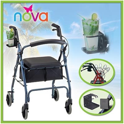 - The GetGo Classic comes with the following great features: Deluxe Cup Holder - This is the very best cup holder around. It easily attaches to any tube (even a slanted one), is adjustable for many size drinks, and closes up when not in use. The Deluxe Cup Holder can be attached to your desired spot on your walker in just a few minutes. (screwdriver required - not included) Feather Touch Locking Hand Brakes - Nova patented hand brakes have been engineered for maximum comfort and control. Users with weak or small hands will find our braking system easier to use. Simply pull up on the handle to control the speed and push down on the rounded end to lock the brakes in a park position. To release, pull up on the handle. Reflectors are positioned at the end of the hand brakes for additional user safety. Flip Up Back - This convenient design flips up for compact transporting and quickly flips back down to provide a backrest when seated. Comfortable Padded Seat - The large padded seat makes sitting comfortable with a 2" thick pad. Large Under Seat Storage Pouch - It is easy to carry and store your personal belongings in the roomy under seat storage pouch. The pouch also has an inner pocket for small items such as keys and pills. The seat lifts up to access the pouch while keeping your personal items securely out of view. Lock N Load Feature: Nova is the only rolling walker brand to develop a unique solution to a common rolling walker problem with the Lock N Load. Keeping your Nova in locked in a folded position has tremendous everyday benefits. This makes it much easier to 1) Lift in a out of a car 2) For storage or travel. This feature also reduces wear and tear to your Nova walker and makes handling your Nova walker much easier for the family, friends, and anyone who parks or stores your walker.