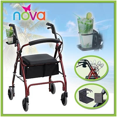 Getgo Classic Rolling Walker with Deluxe Cup Holder By Nova(red) features